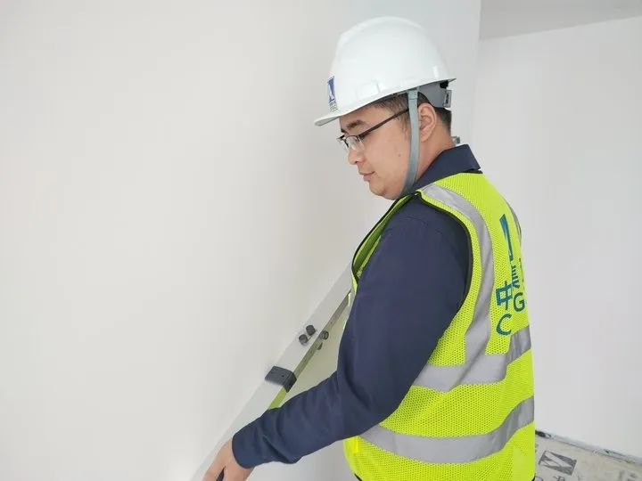 他的工作與瓷磚、膩?zhàn)?、水泥打交道,需要時(shí)刻手拿靠尺、角尺等檢測(cè)工具對(duì)項(xiàng)目乳膠漆墻面進(jìn)行實(shí)測(cè)實(shí)量;手拿空鼓錘對(duì)現(xiàn)場(chǎng)墻磚進(jìn)行空鼓排查,對(duì)每個(gè)部位全面排查、查找隱患,保證施工質(zhì)量。這樣的檢測(cè)動(dòng)作,每天要重復(fù)上千次,就是為了優(yōu)質(zhì)履約,為業(yè)主提供一個(gè)安全住所。