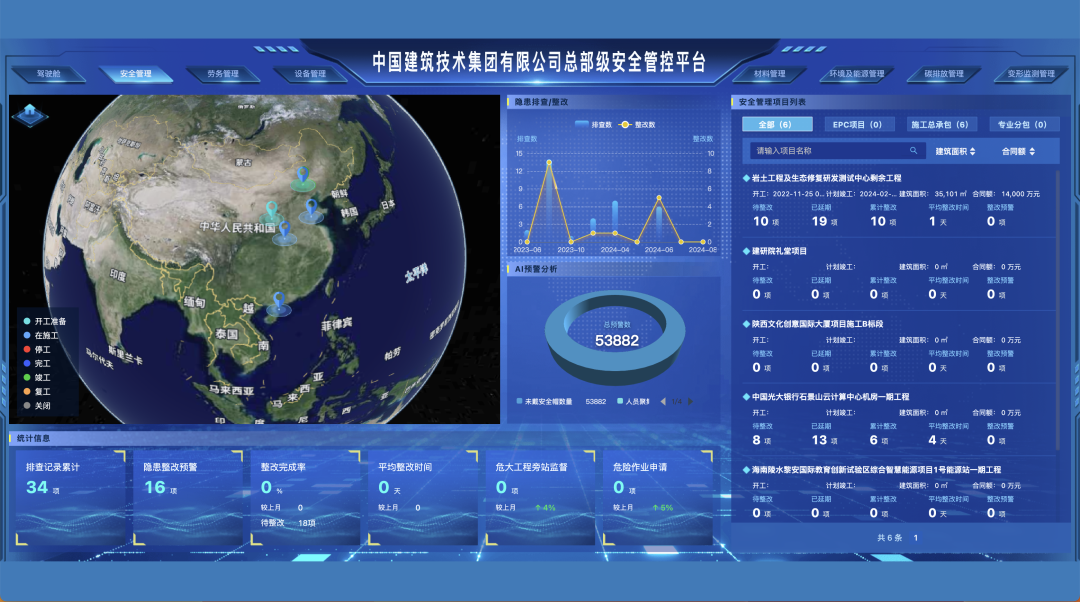 課題組研發(fā)了塔式起重機(jī)安全監(jiān)控、施工升降機(jī)安全監(jiān)控、高支模安全監(jiān)控、人員行為識別、基坑變形可視化監(jiān)測、基坑智能化監(jiān)控等安全管理關(guān)鍵系統(tǒng),實現(xiàn)了數(shù)據(jù)自動采集,實時上傳到項目和企業(yè)總部,為提升企業(yè)總部項目安全生產(chǎn)管理能力提供了技術(shù)支撐。
