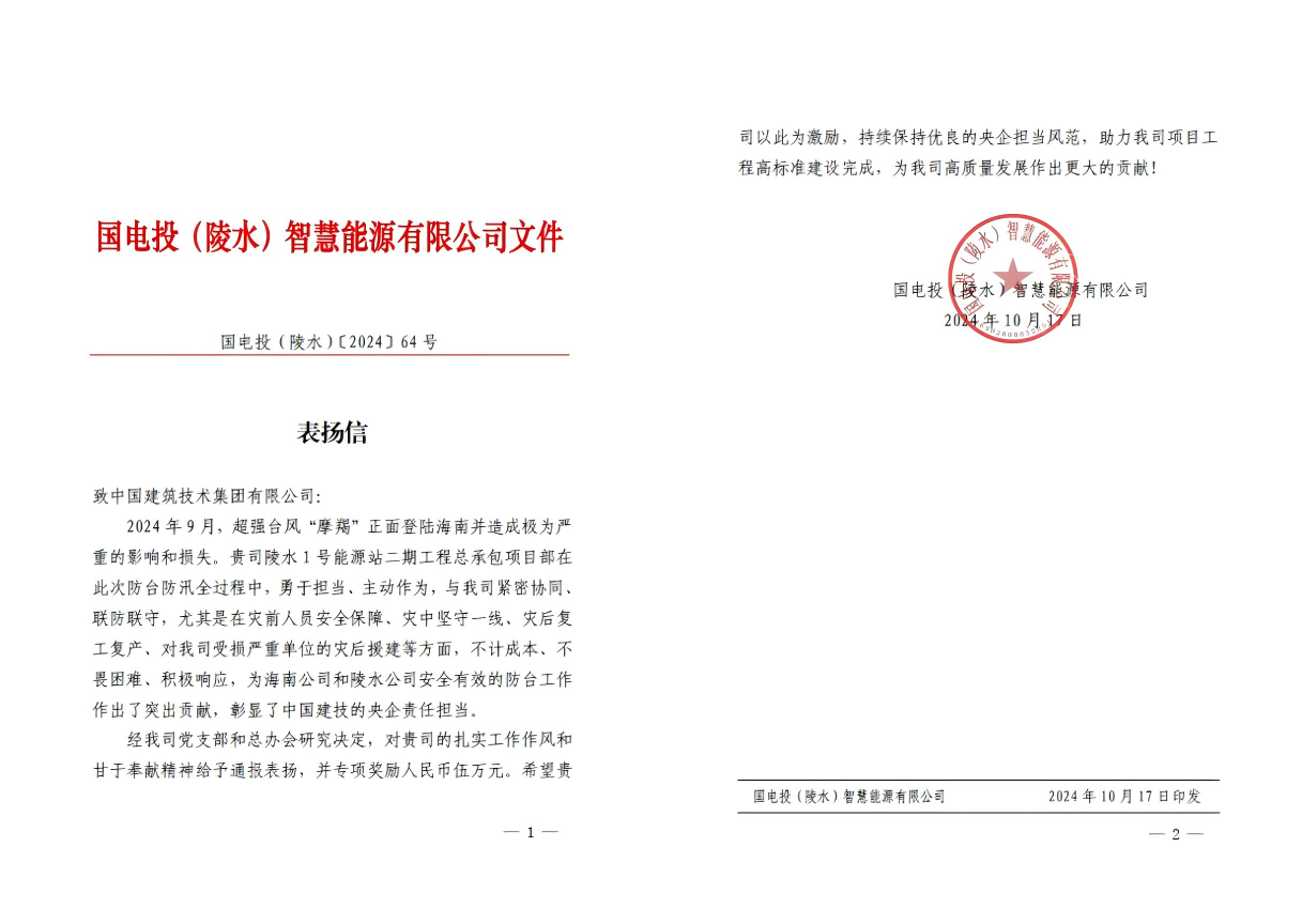 在9月“摩羯”臺風(fēng)自然災(zāi)害突襲下,項(xiàng)目部積極擔(dān)當(dāng)、善作善為。在保護(hù)好所有參建人員人身安全前提下,全力維護(hù)甲方既有財(cái)產(chǎn)和施工現(xiàn)場不受損失,并在災(zāi)后第一時間,抽調(diào)項(xiàng)目主力,參與社會救援。此舉深受當(dāng)?shù)卣徒ㄔO(shè)單位贊許,業(yè)主給予通報(bào)表彰和現(xiàn)金獎勵。