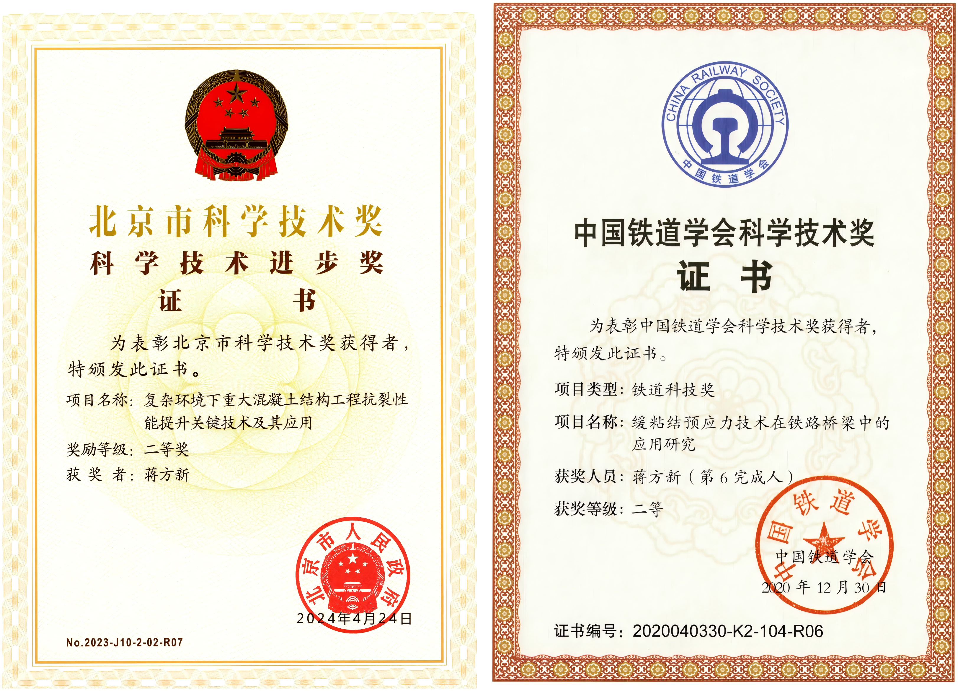 獲得2021年度華夏建設(shè)科學(xué)技術(shù)獎(jiǎng)三等獎(jiǎng)、2023年度北京市科學(xué)技術(shù)進(jìn)步獎(jiǎng)二等獎(jiǎng)、2024年河南省科學(xué)技術(shù)進(jìn)步獎(jiǎng)二等獎(jiǎng)、2024年度中國工程建設(shè)標(biāo)準(zhǔn)化協(xié)會(huì)青年創(chuàng)新獎(jiǎng)等省部級(jí)及學(xué)協(xié)會(huì)各類科技獎(jiǎng)10項(xiàng)。