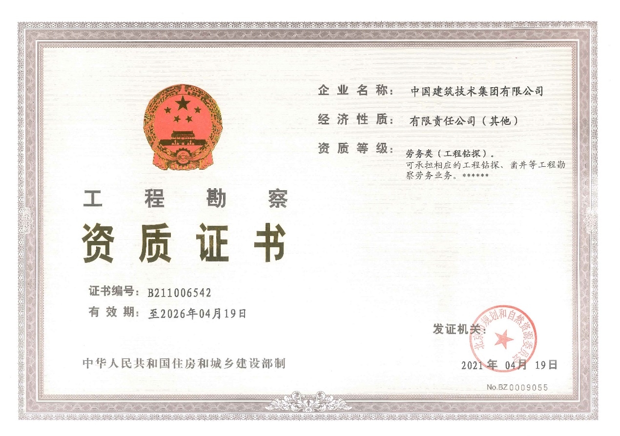 ? ? ? ?4月19日,集團(tuán)公司獲得了北京市規(guī)劃和自然資源委員會(huì)頒發(fā)的工程勘察勞務(wù)類(工程鉆探)資質(zhì)證書(shū)。
