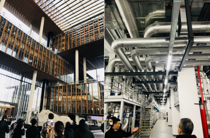 亞洲基礎(chǔ)設(shè)施投資銀行總部是國(guó)家“一帶一路”倡議建設(shè)重點(diǎn)工程,也是首個(gè)由我國(guó)倡議成立的政府間多邊開(kāi)發(fā)機(jī)構(gòu)??偛看髽且浴棒敯噫i”為設(shè)計(jì)理念,高空俯視的“中國(guó)結(jié)”寓意著“中國(guó)結(jié)·連接世界”,彰顯著我國(guó)開(kāi)放自信的姿態(tài)。設(shè)計(jì)師們?cè)谥v解員的帶領(lǐng)下先后參觀了公共區(qū)域、辦公區(qū)域和設(shè)備機(jī)房等,全面了解了大樓的建筑特色,80米高的挑空大廳和7個(gè)采光中庭的設(shè)置使所有工作區(qū)享受開(kāi)闊視野與均衡采光,10處空中花園的置入營(yíng)造出了兼具藝術(shù)性和實(shí)用性的綠色多元復(fù)合空間,總部大樓與眾不同的設(shè)計(jì)巧思和精妙絕倫的建筑技術(shù)令在場(chǎng)的設(shè)計(jì)師們深感震撼。