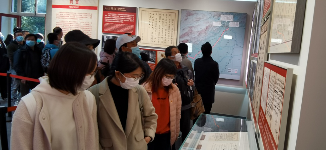 “毛澤東同志在香山”館,展示了“進(jìn)京趕考”、“進(jìn)駐香山”、“繼續(xù)指揮解放全中國(guó)”、“新中國(guó)籌建”等雙清別墅中發(fā)生的各大事件。黨員們俯身仔細(xì)查看著一張張珍貴的照片和文件資料,駐足觀看開(kāi)國(guó)大典的影片片段,回顧當(dāng)年中共中央從西柏坡遷至香山后,在此指揮解放全中國(guó)、籌建新中國(guó)的點(diǎn)滴細(xì)節(jié),汲取砥礪前行的精神力量。