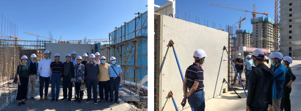 項目負(fù)責(zé)人張捷所長詳細(xì)介紹了項目的設(shè)計過程、設(shè)計難點(diǎn)及施工現(xiàn)場服務(wù)等工作,設(shè)計六所駐場工程師劉皓、林玉泉介紹了構(gòu)件加工與安裝情況??疾旖M現(xiàn)場查看了預(yù)制構(gòu)件堆場、預(yù)制構(gòu)件安裝與連接、預(yù)制輕質(zhì)隔墻板安裝等情況,并與工程施工及監(jiān)理單位有關(guān)負(fù)責(zé)人進(jìn)行座談,詳細(xì)了解工程施工及質(zhì)量驗收過程中的難點(diǎn)與要點(diǎn)。施工及監(jiān)理單位對設(shè)計六所的現(xiàn)場服務(wù)給予了充分肯定。
