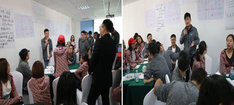 9月22日上午,在專業(yè)培訓師的指導下,用貝爾賓團隊角色理論測試每位員工的團隊角色,結合該測試結果,進行了一場充滿參與性、互動性、實戰(zhàn)性、競爭性的沙盤模擬訓練。新員工們分組抽簽決定各自的所處的地形情況及資源狀況,通過小組合作產出產品并到統一的市場交易獲得效益,通過效益的多少等多重指標衡量經營的整體狀況。培訓中,小組成員充分地展示出了當代年輕人開闊的思維方式,會場熱鬧紛紛。他們思維活躍、分工有序,在充分分析內外形勢的前提下,有效經營,各小組均獲得了十分可觀的經營效果,得到了培訓團隊的一致好評,最后每個小組的精彩自我點評再次將培訓推向高潮。會后大家意猶未盡,午餐時分依然在探討思路和方法。
