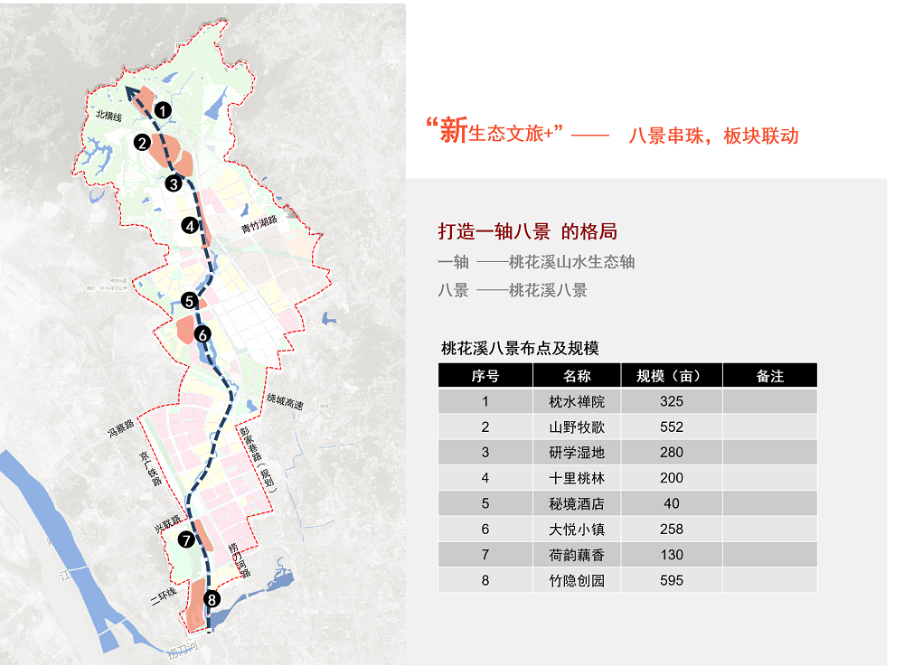 按照“山水林田湖草”命運共同體理念,主要規(guī)劃了包括桃花溪流城生態(tài)治理、土地梳理、產(chǎn)業(yè)策劃等三方面的內(nèi)容。