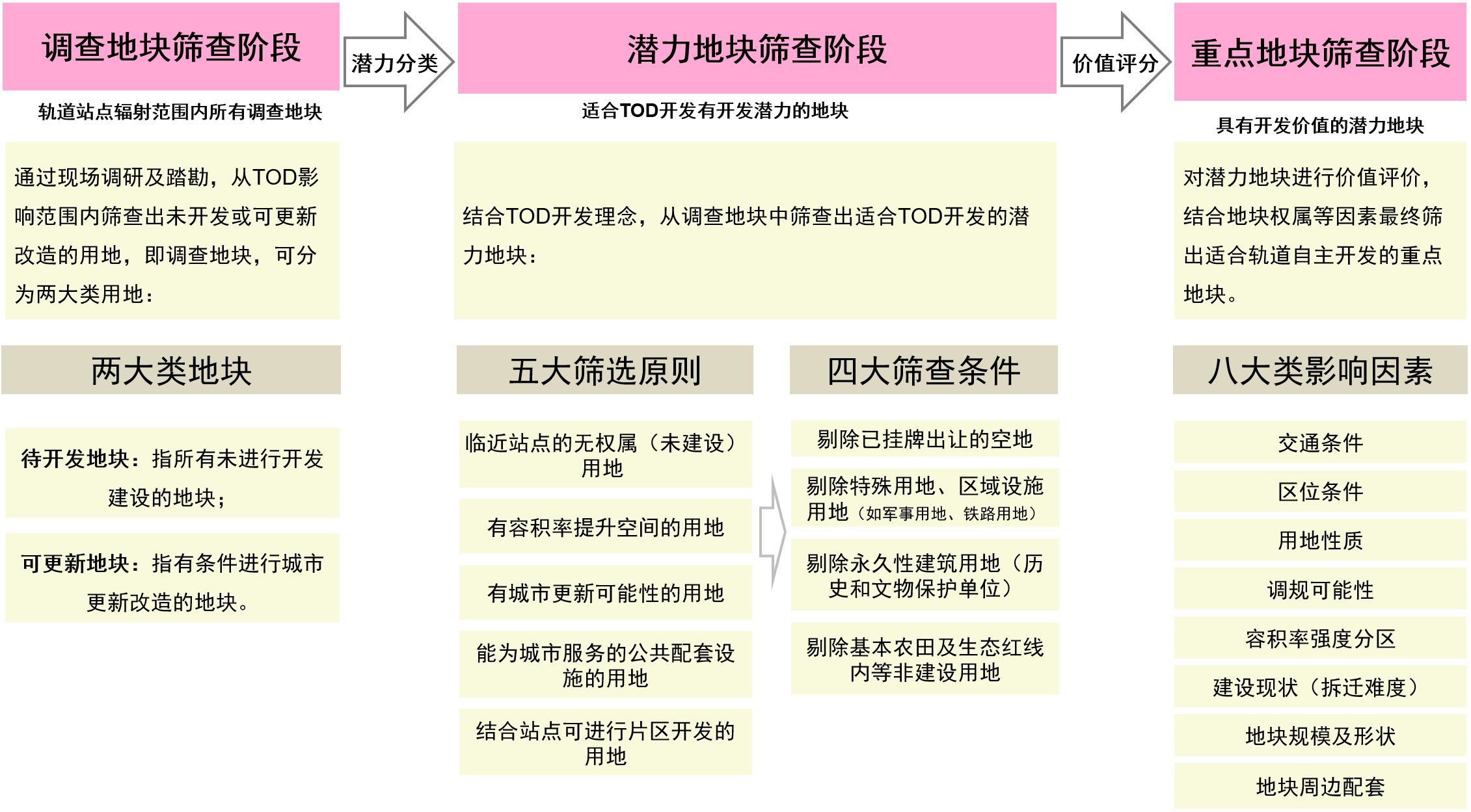 通過現(xiàn)場調(diào)研及踏勘,從TOD項(xiàng)目、土地篩查項(xiàng)目調(diào)研范圍內(nèi)進(jìn)行軌道沿線調(diào)查地塊初級(jí)篩查工作,篩選出兩大類用地: