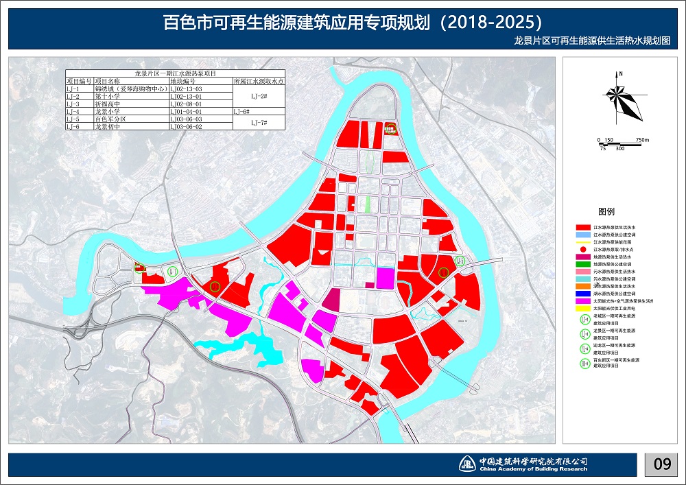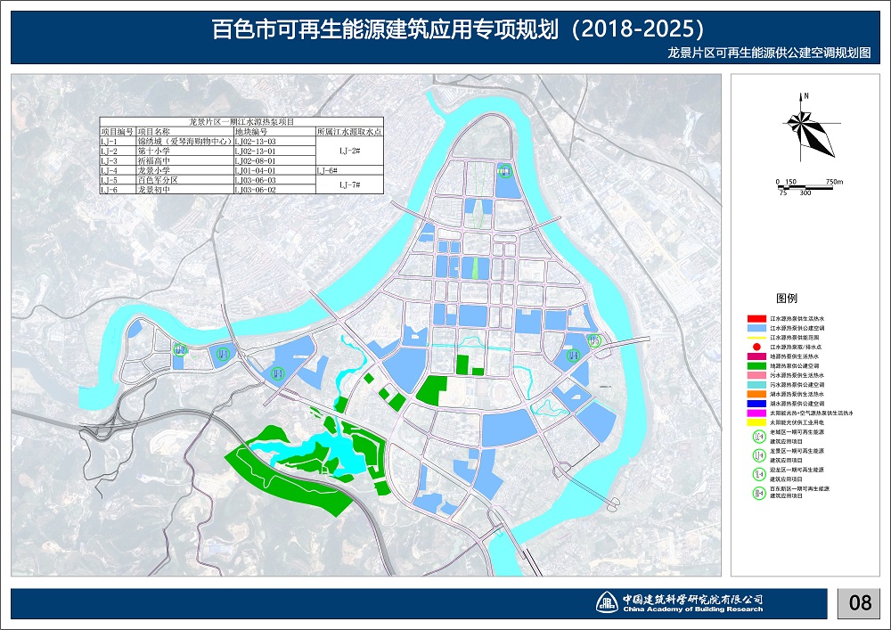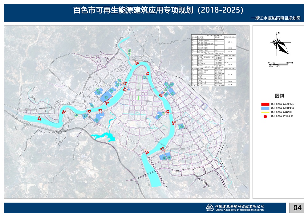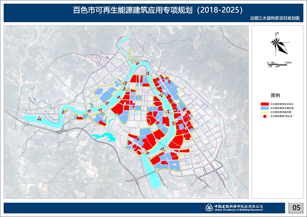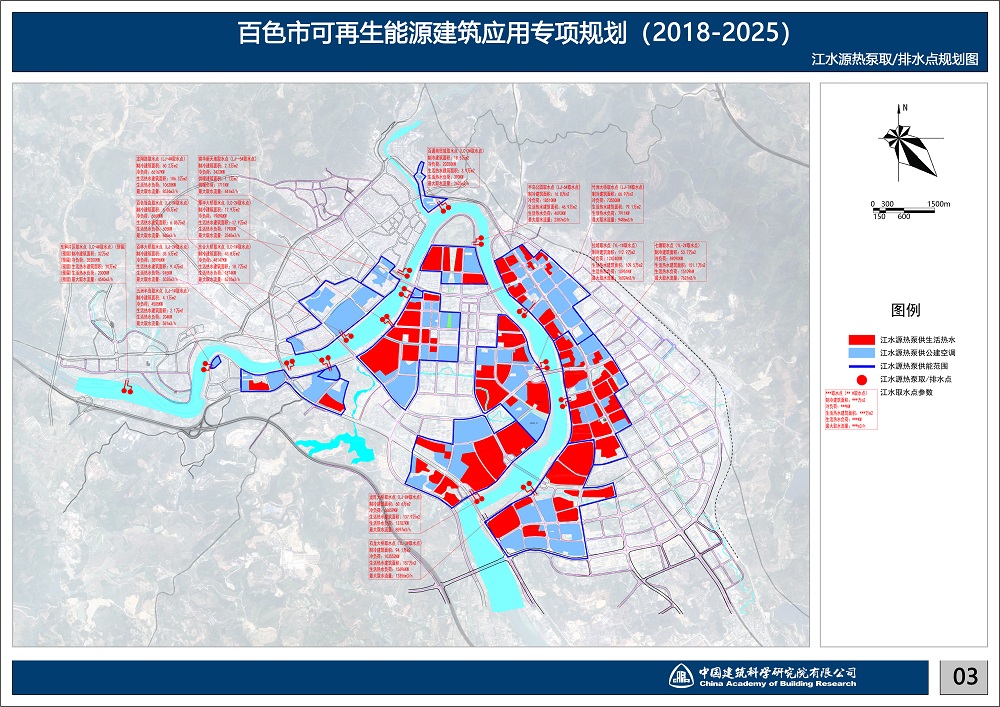 本規(guī)劃大規(guī)模應(yīng)用江水源熱泵。劃針對百色市獨(dú)特的豐富水源——右江水系,專門制作江水源熱泵規(guī)劃專篇,研究江水源熱泵效率的各影響因子,以取排水點(diǎn)互不干擾為原則,科學(xué)排布取排水點(diǎn)。并根據(jù)建筑物布置確定江水源熱泵站點(diǎn)位置。