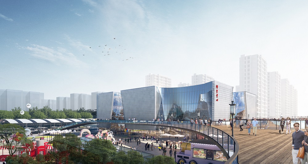 活力天街場(chǎng)景——構(gòu)思利用300余米長(zhǎng)的架空平臺(tái)加上400余米長(zhǎng)起伏的景觀步道,形成總長(zhǎng)800米、貫穿整個(gè)基地的帶狀連續(xù)步行空間(天街),避開喧囂,開放視野,一路通達(dá),體驗(yàn)活力。