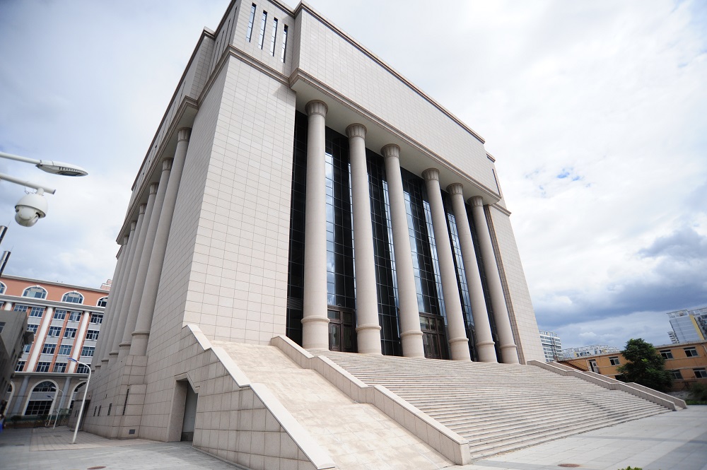 主體建筑長55.8米,寬61.2米,高54米,體量集中緊湊。外立面造型簡約、典雅,以中軸線東西對稱布局的形式表現(xiàn)了建筑的端莊、神圣。外裝飾石材實體墻、柱廊、玻璃幕的虛實對比光影的變化,表現(xiàn)了建筑的藝術(shù)美和恢弘氣勢。四個立面設(shè)計的柱廊每面6根共24根柱式,代表了一年四季24節(jié)氣,春夏秋冬,四季常青,蘊含著自然和生命的和諧,裝飾柱被譽為“生命和平柱”。