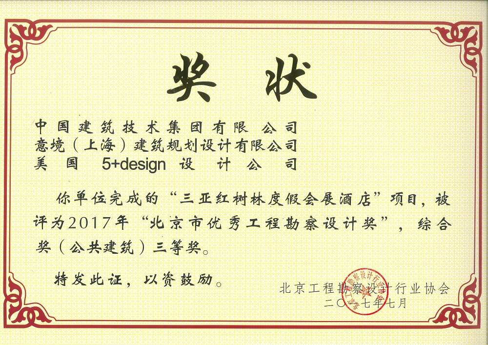 被評(píng)為2017年“北京市優(yōu)秀工程勘察設(shè)計(jì)獎(jiǎng)”,綜合獎(jiǎng)(公共建筑)三等獎(jiǎng)。