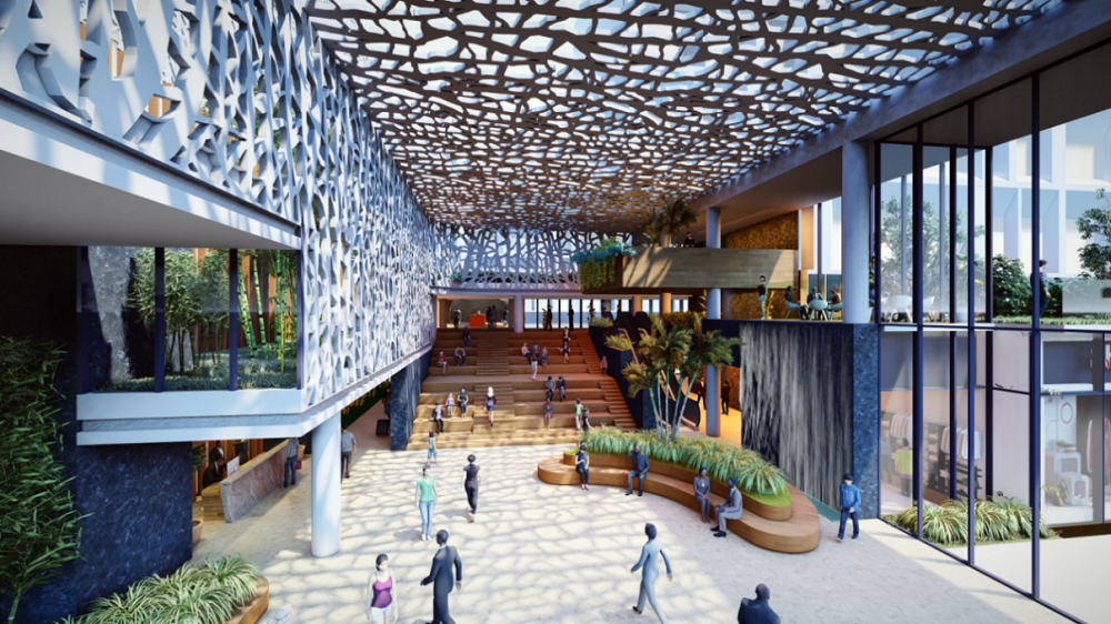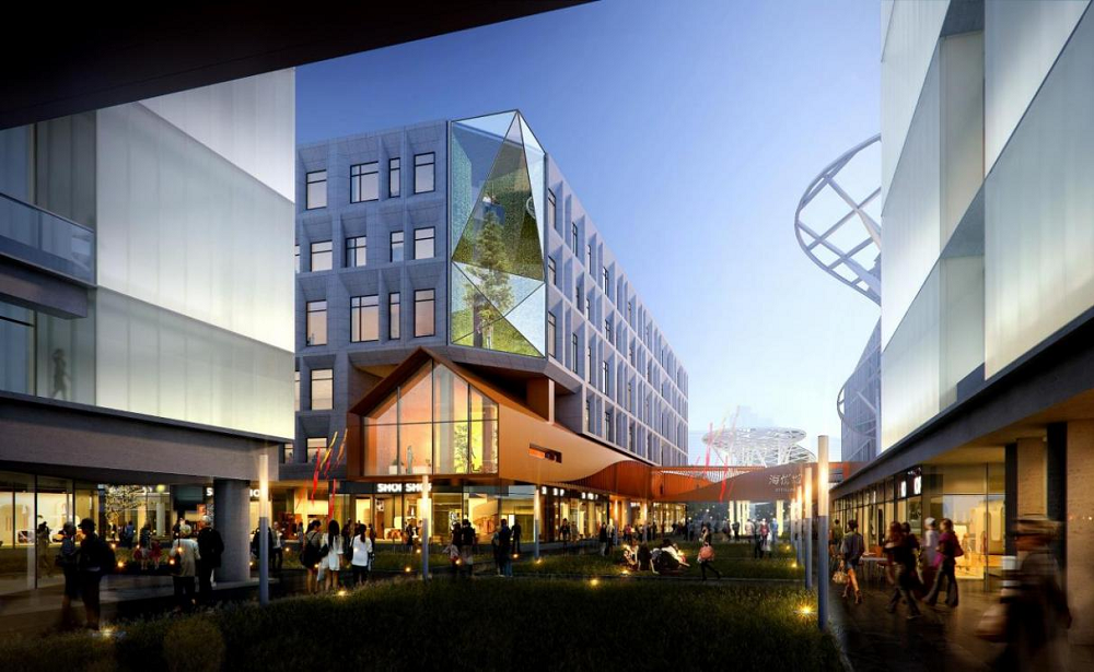 針對項目的所處區(qū)域環(huán)境、既有建筑群空間與土建現(xiàn)狀等現(xiàn)實挑戰(zhàn),規(guī)劃設(shè)計提出打造集住宿、工作、社交、休閑于一體的商務(wù)生態(tài)閉環(huán)策略。通過連通首層商業(yè)東線、塑造小鎮(zhèn)中心、加建空中連廊、改建局部空間等方式,將首層商業(yè)社區(qū)、二層酒店社區(qū)與上層商務(wù)辦公社區(qū)多業(yè)態(tài)由平面復(fù)合街區(qū)轉(zhuǎn)向為立體復(fù)合街區(qū),以構(gòu)建更具溫度感的生活情景,加強(qiáng)侵入式的極致體驗,提升服務(wù)資源的共享品質(zhì),創(chuàng)造多樣化的空間視點,引發(fā)不同視角下對生活的獨(dú)特感悟。